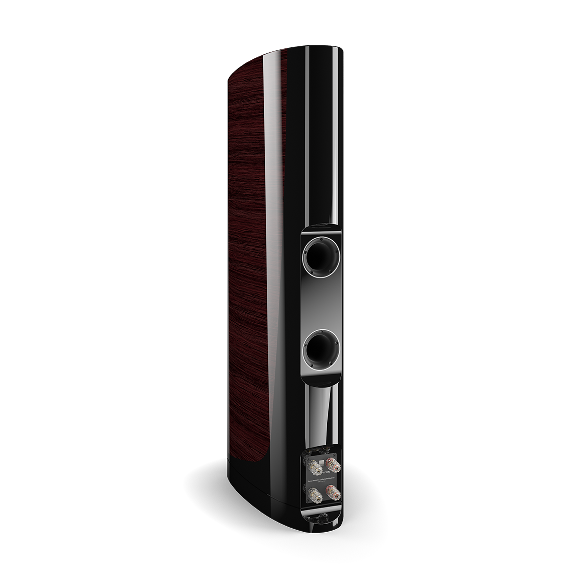 Blending elegant design and functionality The EPICON 8 is a masterclass in elegant loudspeaker design, with curved lines and a real-wood veneer finished with 10 layers of lacquer, each hand polished to a deep gloss. But the cabinet is also functional. With no parallel surfaces, unwanted reflections are practically eliminated, while the rigid construction provides a solid platform and an acoustically tuned 'spring' for the drivers, which helps to eliminate resonant energy. Separate chambers inside the cabinet also allow each woofer to be individually tuned to perfection, and bass ports located directly behind the bass and midrange drivers minimise turbulence and deliver exceptional timing.